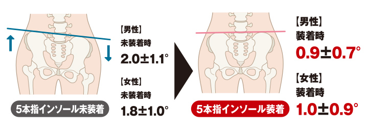 We investigated the stability of the pelvis using image analysis with and without insoles.