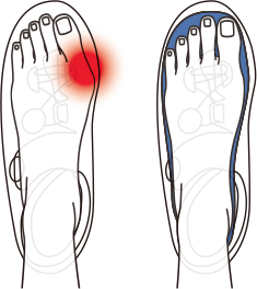 Conventional insoles inevitably cause the toes to become misaligned and unsteady, which strains the toes and tires the muscles in the calf that bend the toes (flexor digitorum longus and flexor digitorum longus). Five-Finger Insoles perfectly copy the shape of the sole of the foot, which is not possible with conventional insoles, so the toes are stabilized and the muscles in the calf are less tense, allowing you to perform exercises and movements in a relaxed state.