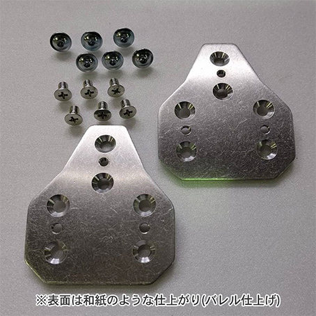 前側の皿穴使用でクリート位置が1cm下がり、後側の皿穴使用でクリート位置が1cm上がります。ムーブスペーサーをプラスネジで3か所留めます。クリートとムーブスペーサーの固定は、必ず専用のクリートボルト(3mm六角ボルト)をご使用ください。クリートとスペーサーの間にシム等をはさむ場合、ボルトの長さが足らなくなる場合がございます。予めご了承ください。